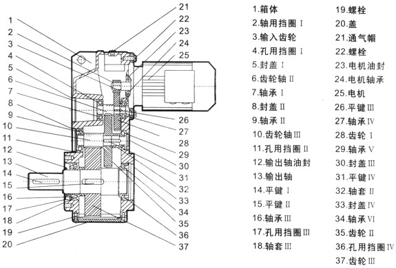 1.特點(diǎn):平行軸輸出、結(jié)構(gòu)緊湊、傳遞扭矩大、 工作平穩(wěn)、噪音低、壽命長(zhǎng)。